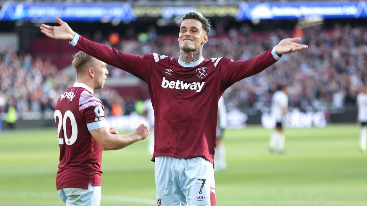 He has plenty of similarities to a younger version of the player who replaced him 80 minutes into Sunday's 3-1 win over Fulham, Michail Antonio, and Scamacca seemed (and had every right to be) irritated by his substitution. His growing popularity at the London Stadium was evident in his reception as he walked off the pitch.