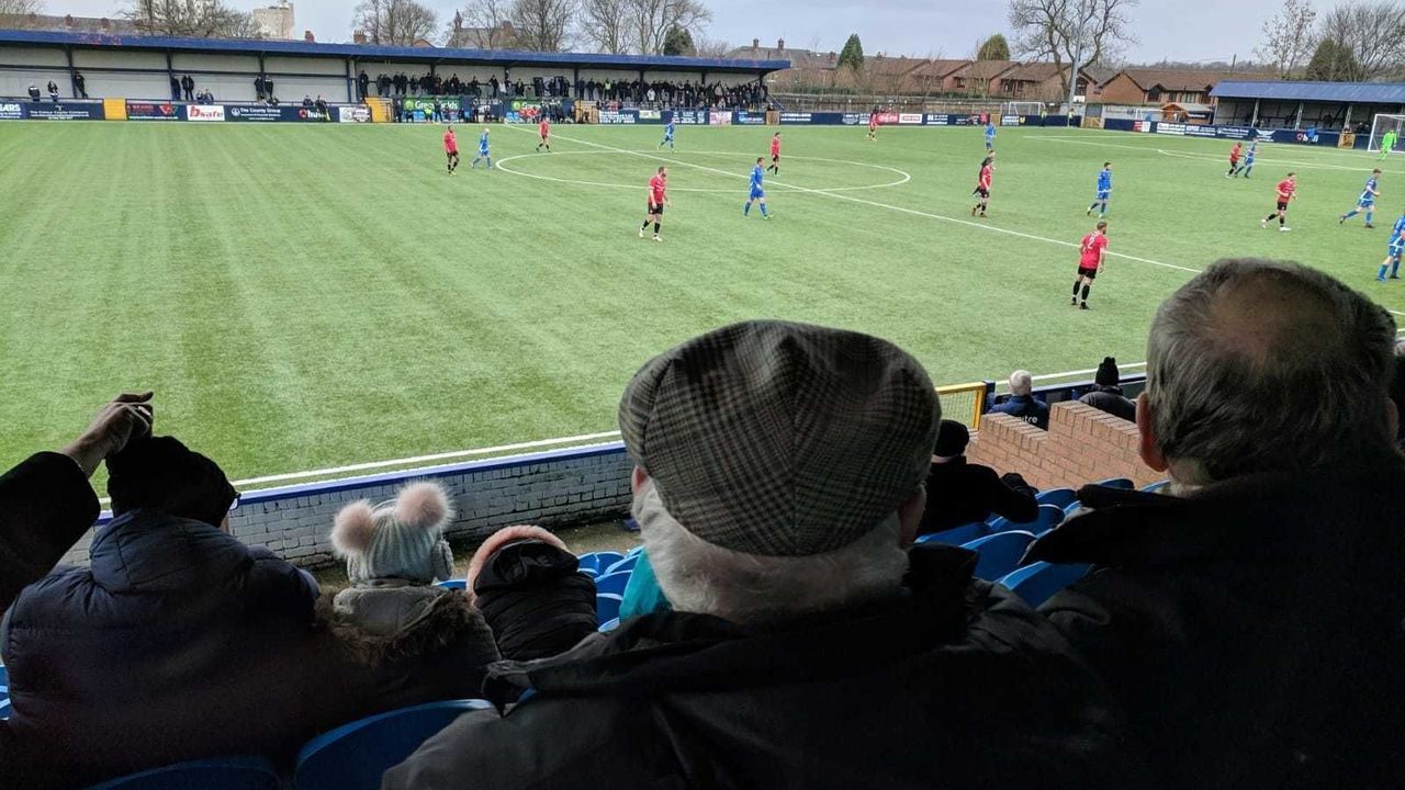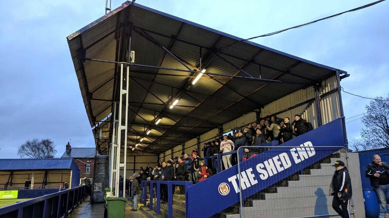 Down the street, an old passageway up to Hyde United's Ewen Fields is cordoned off by metal fencing. Behind it, crisp packets and beer bottles are strangled by weeds. Up at the ground, club board members and referee assessors congregate in the Pete O'Brien Lounge and compete in nostalgic pre-match quizzes with answers like "The Everly Brothers" and "Frasier." Outside, people wisely huddle under the stands, readying themselves for another onslaught of rain.