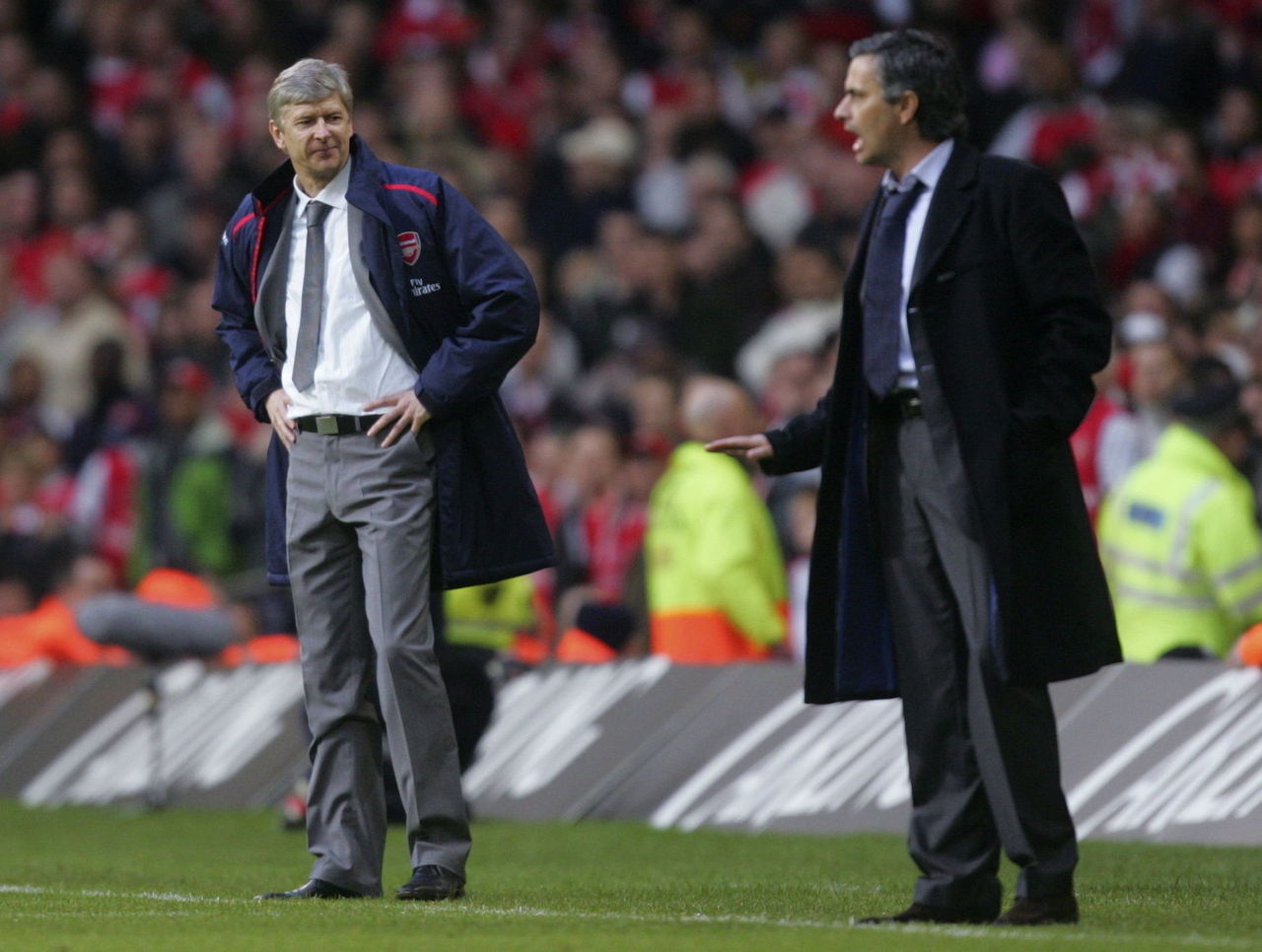 They almost came to blows on the touchline later that October - a match Chelsea won 2-0 - but the lasting memory was the sight of fourth official Jon Moss separating Mourinho and Wenger as they barked at each other.