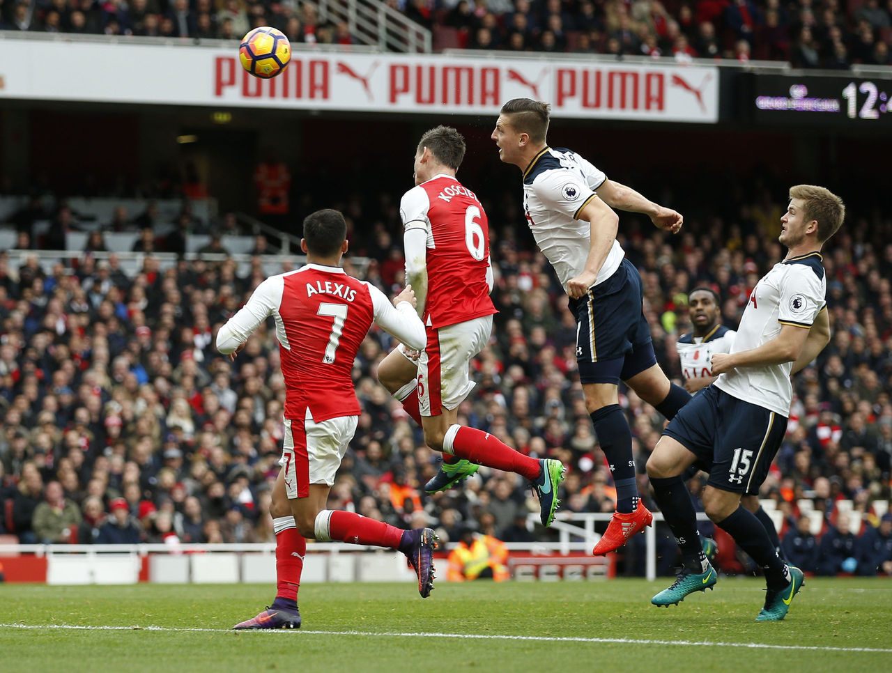 The Spurs' standout made a bustling foray through the middle, forcing Koscielny, who was faultless this season until this point, into action. The Frenchman clumsily bundled the midfielder over.