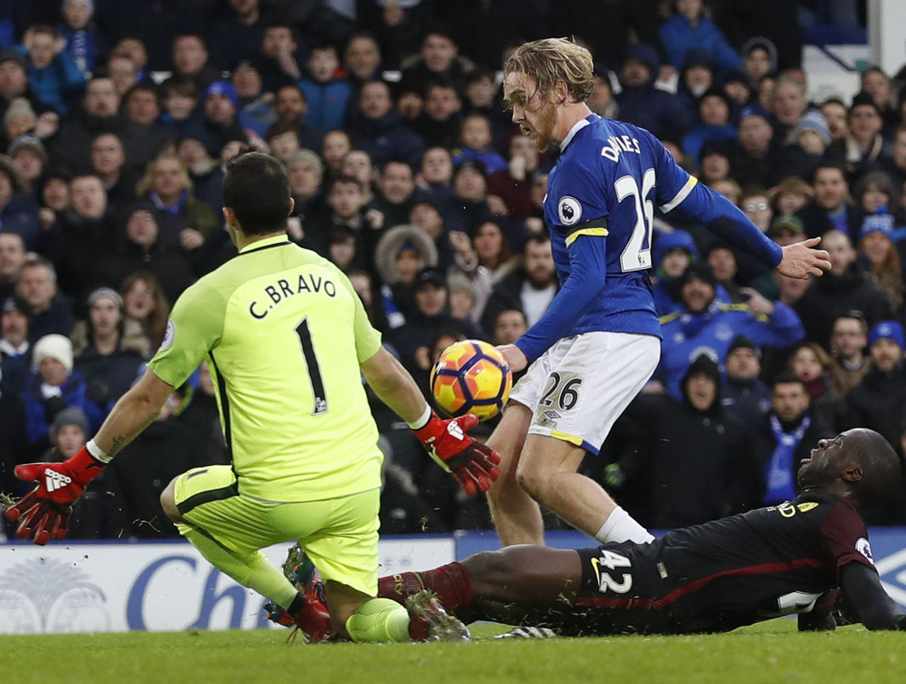 Following Mirallas' strike, the visitor all but surrendered. Allowing 18-year-old Tom Davies to gallop through the midfield for Everton's third tally, City's defence couldn't track runs or clog gaps. It looked more like a headless chicken running about the pitch.