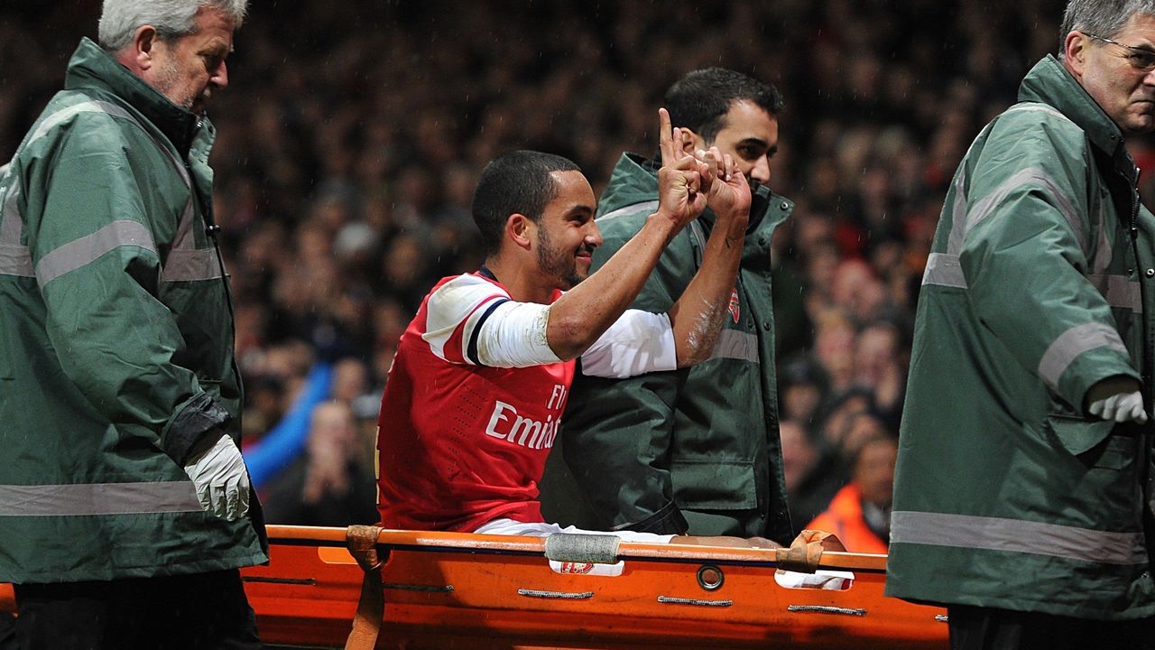 Perhaps the most fitting image of Walcott's time with Arsenal is not the obscene hat-trick-capping solo goal against Newcastle, the display off the bench against Barcelona, or the three-man riot pillaging with Alexis Sanchez and Mesut Ozil against Manchester United. Instead, it's Walcott being stretchered off amid abuse and a shower of coins from a pocket of Tottenham supporters. With a cocked grin and flashing the two-nil scoreline against the most hated of foes, Walcott was in the moment adored by Arsenal supporters in the face of a long-term injury layoff and World Cup absence. It doesn't get much more archetypal than that.