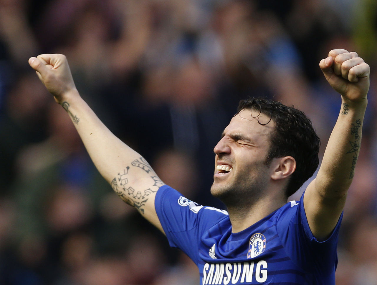 Cesc Fabregas was all smiles after capturing his first Premier League title after nine seasons in England, most of which occurred in North London with Arsenal.