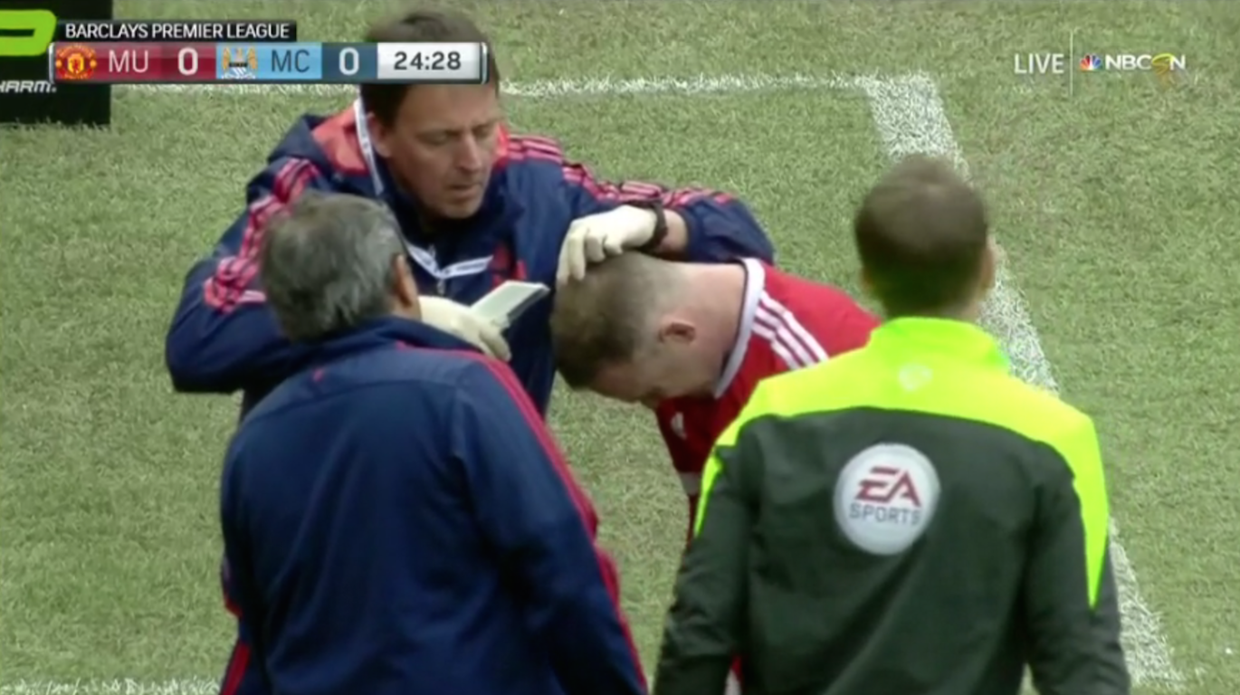 PHOTO: Rooney gets staples in head after colliding with Kompany