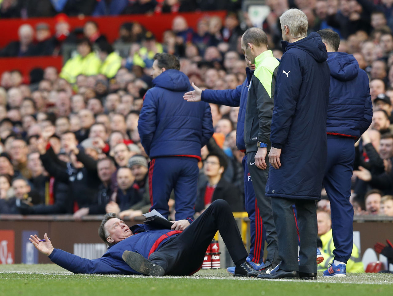 On Sunday, hours before the 88th Academy Awards, Van Gaal submitted a late entry for the Actor in a Leading Role category, theatrically throwing himself to the ground to protest a decision to fourth official Mike Dean in the second half of Manchester United's 3-2 Premier League victory over Arsenal.