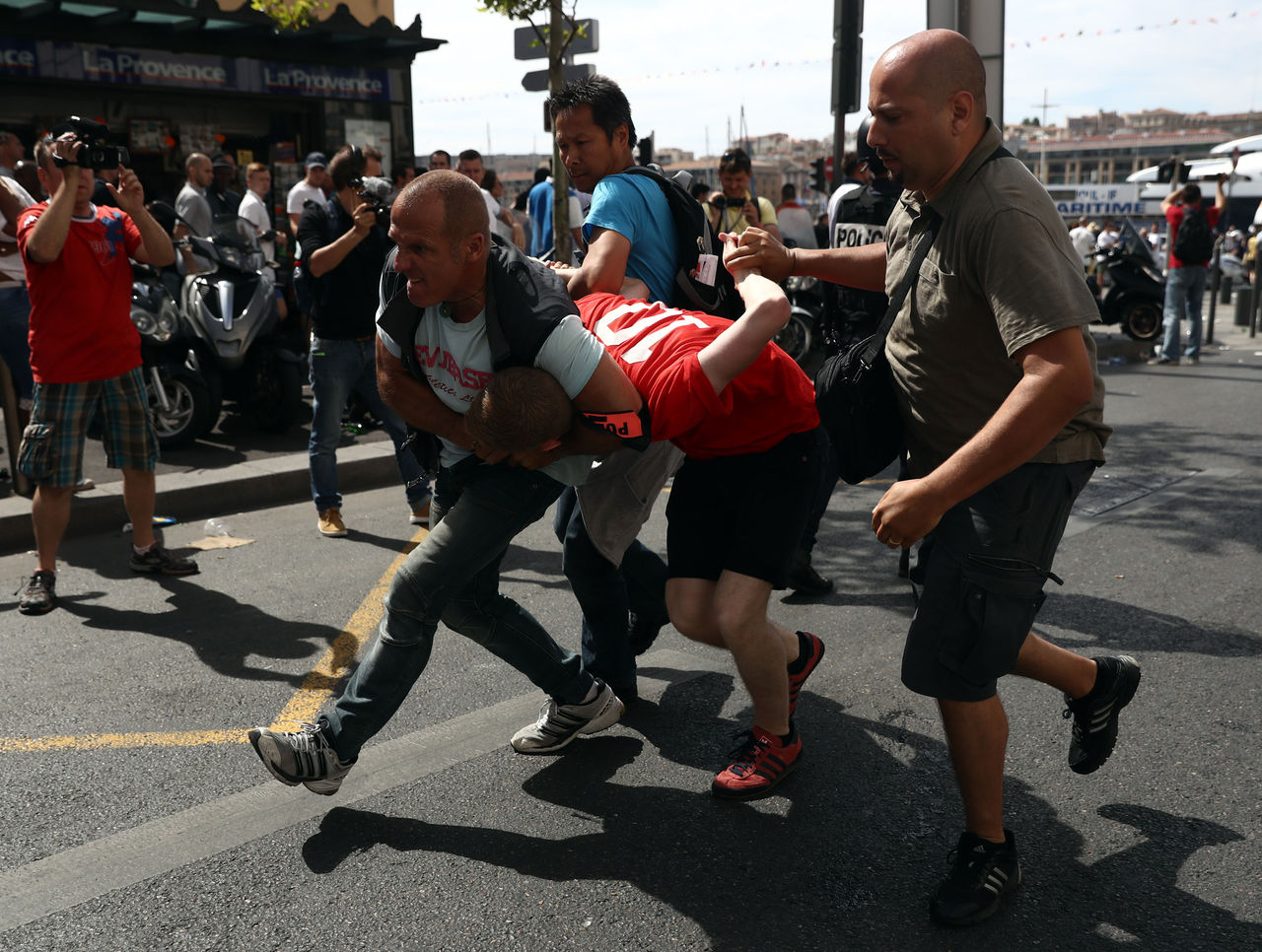 British media published accounts of Russians in Marseille preparing for battle by putting in gum shields and carrying telescopic battons.