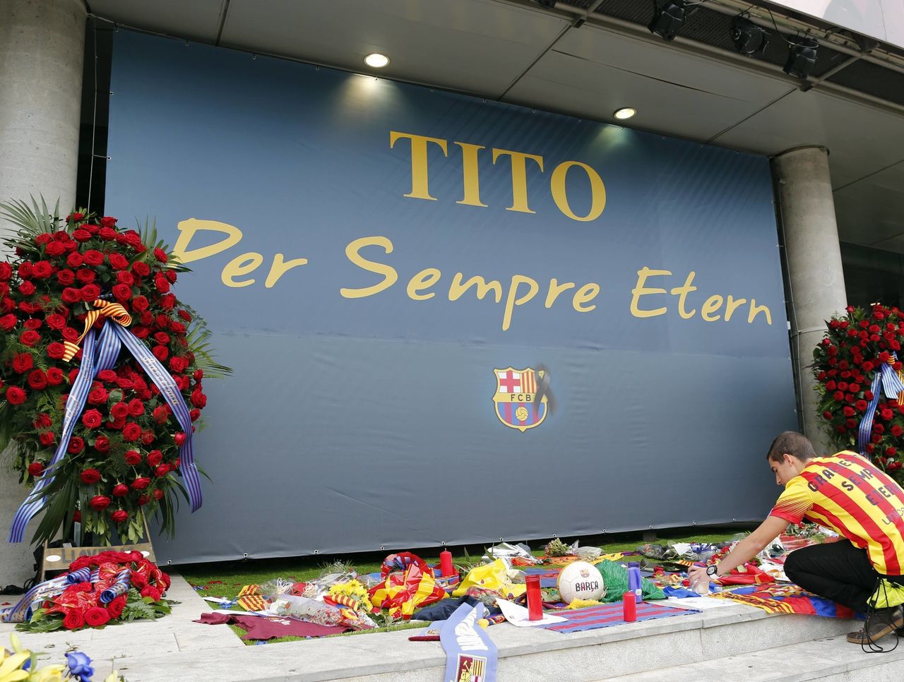 His death was met with an outpouring of support from players and fellow coaches, among others, and outside the Camp Nou, supporters showed up in droves to leave mementos at a memorial that read "Tito, Always Eternal."