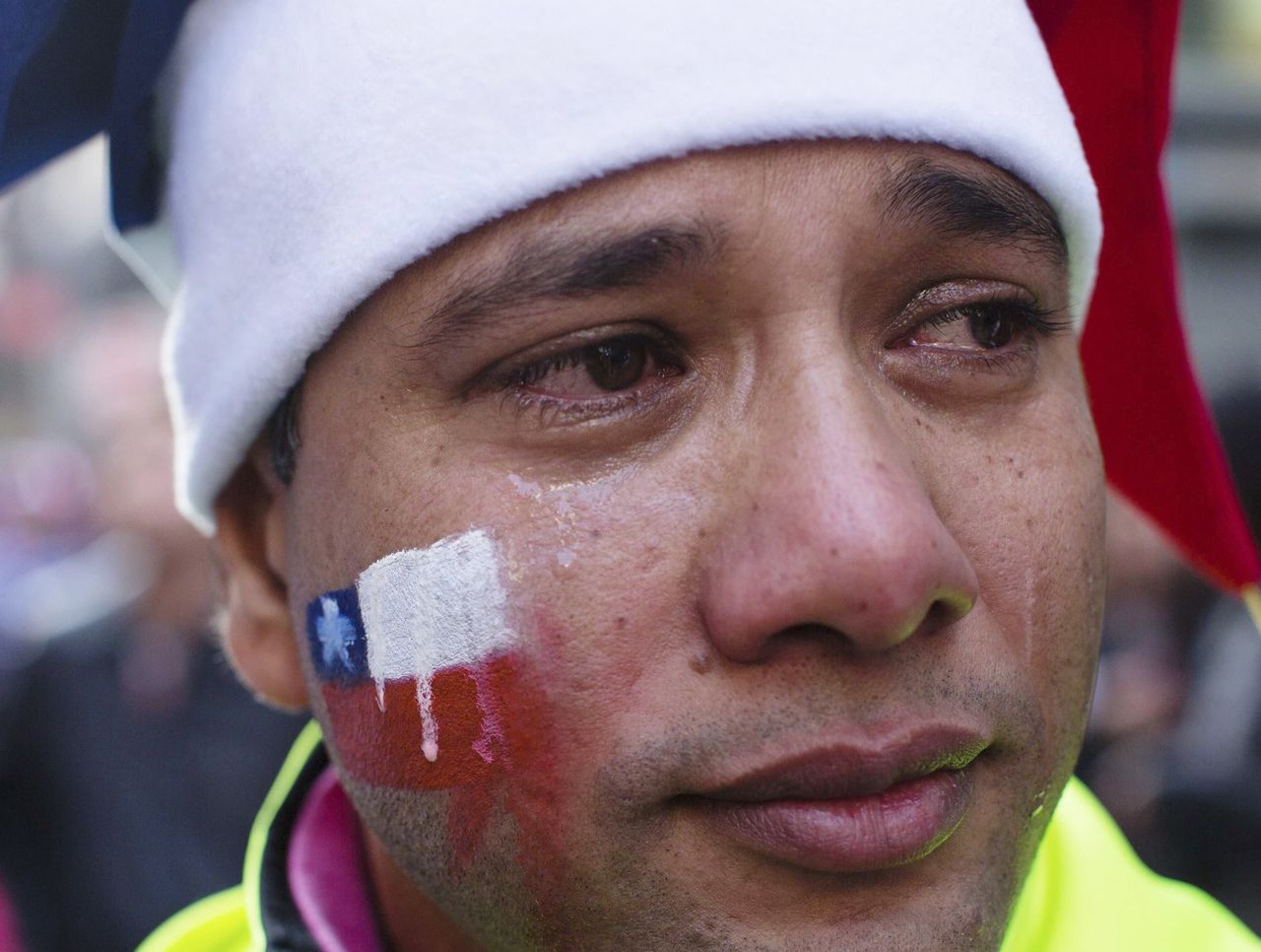 Sadness subsequently overcame the faces of Chilean supporters, including this young man, who couldn't hold back the tears as they rolled over a painted flag on his cheek.