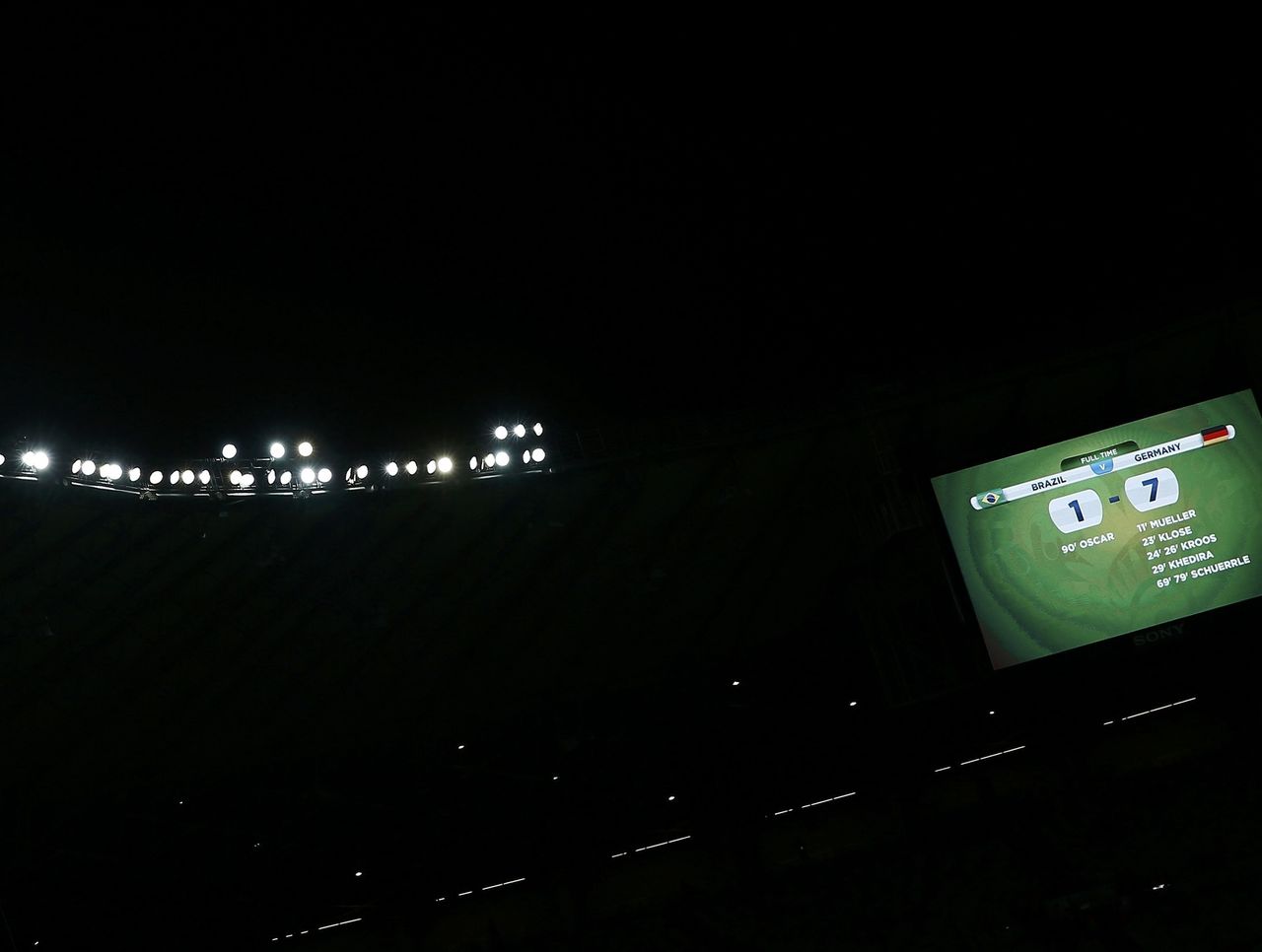 A sadness consumed Brazil after the final whistle, and inside the Mineirao, the mourning of Brazil's World Cup aspirations was met with darkness as the lights were turned out, leaving the "1-7" scoreboard as the only visible item.