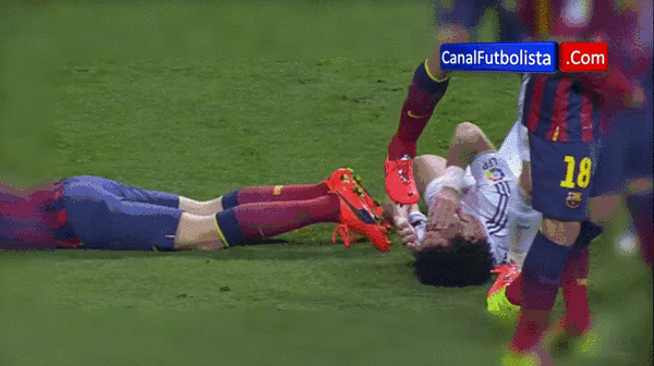 GIF: Busquets steps on Pepe's head during El Clasico