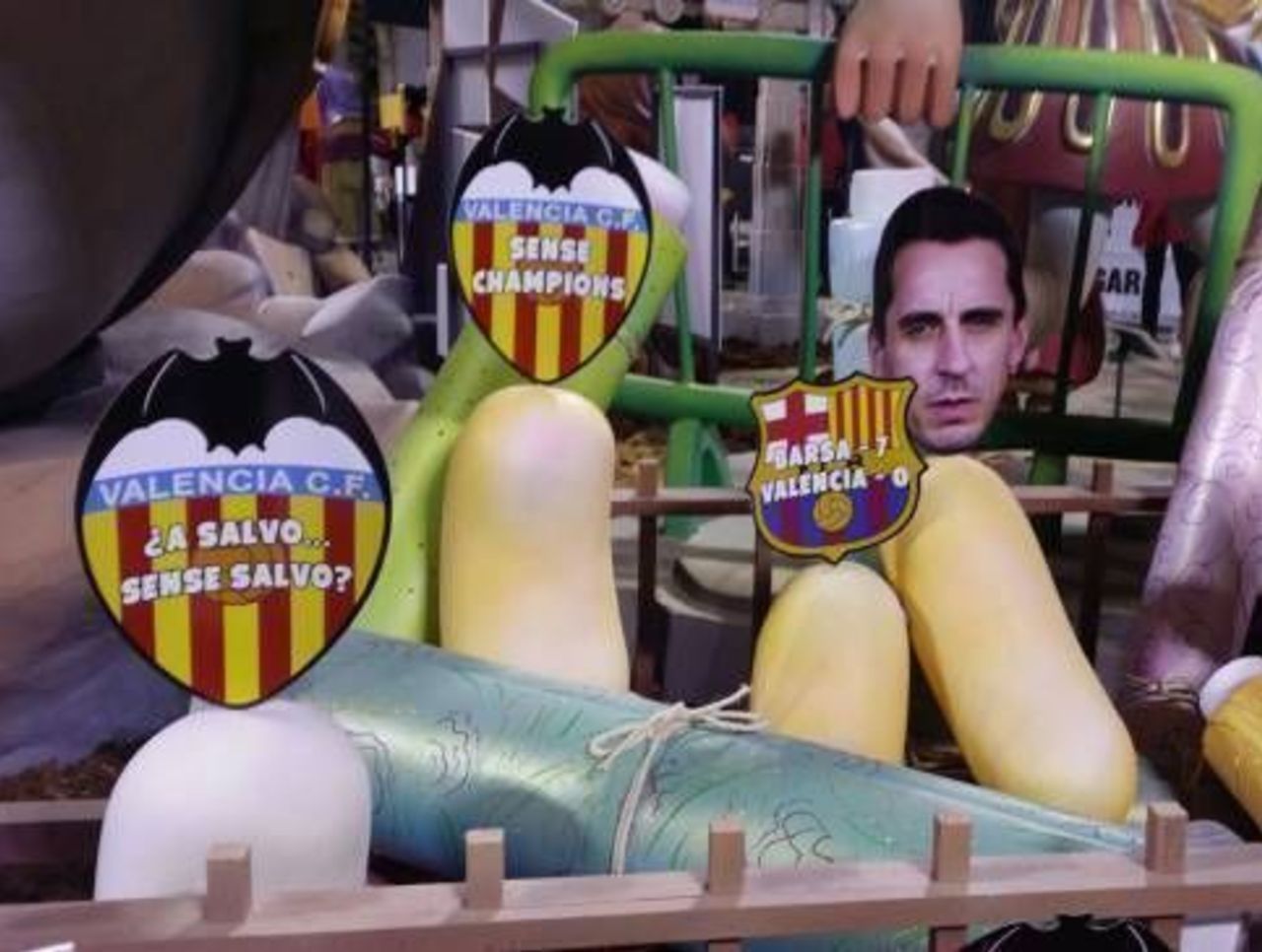 Valencia's season isn't the only thing going up in flames, as an effigy of embattled boss Gary Neville was burned on the Iberian Peninsula on Friday during the city's annual Las Fallas festival.