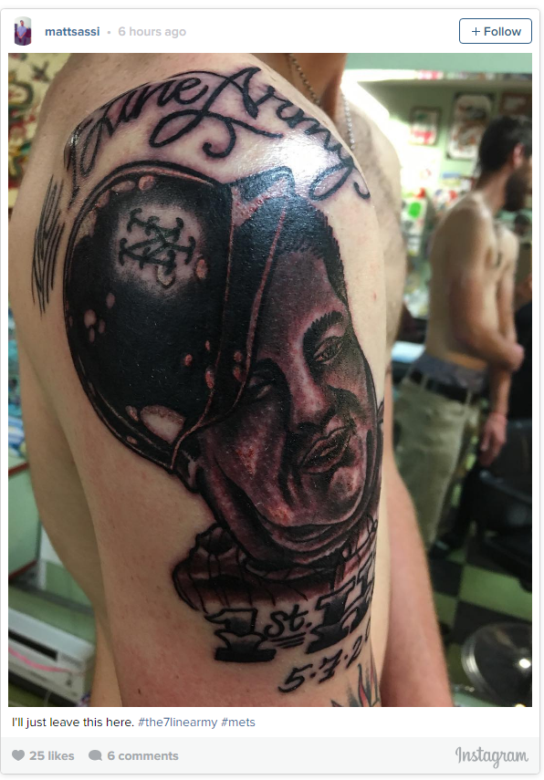 According to Mets blog The 7 Line, New York native and Mets enthusiast Matt Sassi made a bet with his friend before the season started that if Colon hit a home run, he would get a "commemorative tattoo."