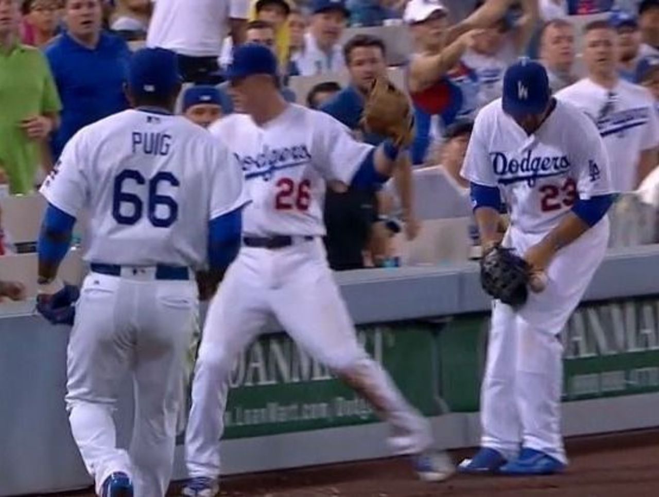 4: Number of times the ball deflected off a glove or body part during Adrian Gonzalez's circus catch against the Nationals.