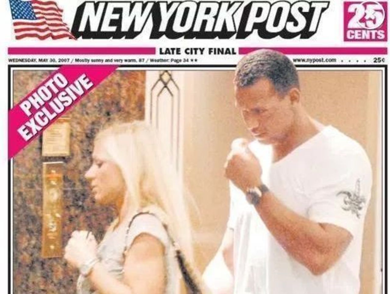 The New York Post would later run a headline on the front page of their paper titled Stray-Rod accompanied by a photo of him and the mystery woman.