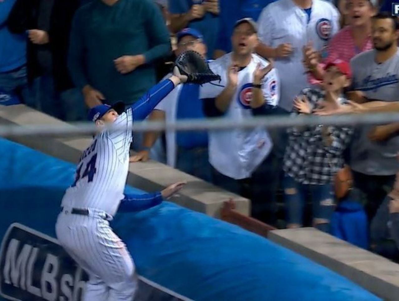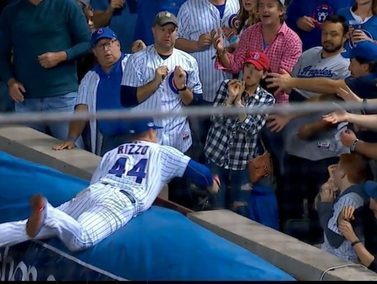 Rizzo's miscue was a close call for nearby fans, who were dangerously close to becoming the next Steve Bartman - had they touched the ball. Of course, it was Bartman in Game 6 of the 2003 NLCS who reached and deflected a crucial foul ball away from Moises Alou, with the Cubs just five outs from the World Series.