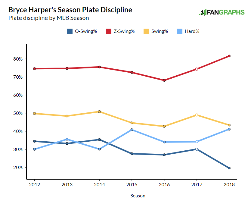 For some time now, of course, Harper has been among the game's foremost purveyors of homers and walks - since his 2015 MVP campaign, he ranks second in the bigs in walk rate and eighth in ISO - but the heretofore unseen level of plate discipline he's demonstrated through this nascent campaign has been straight-up bonkers.