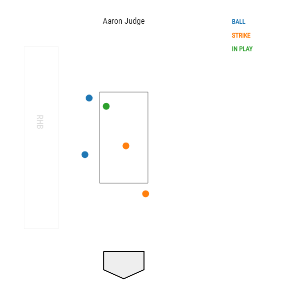 Opening the at-bat with back-to-back sliders, the rookie Gohara had an even 1-1 count before falling behind 2-1 on a fastball that missed inside. The 21-year-old lefty followed that up with another four-seamer down and in, which Judge promptly deposited in the seats.