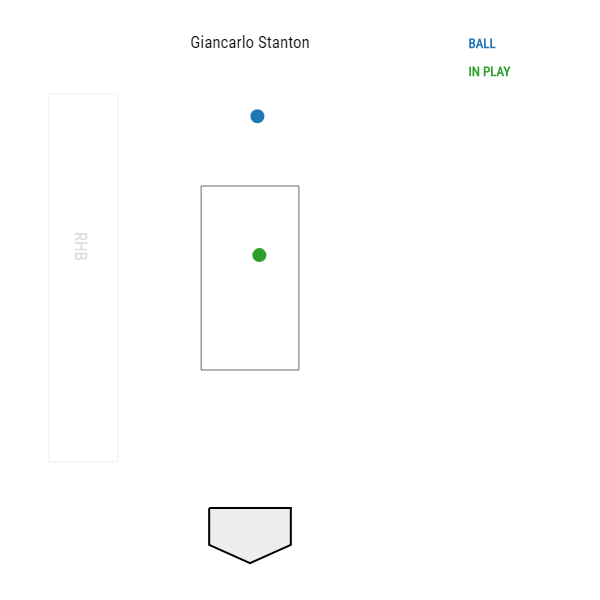 Having struck out Judge earlier earlier in the third frame, Teheran was probably feeling pretty confident. That confidence got the better of him, as he threw three straight four-seam fastballs to Stanton, with the first and third in the exact same location: belt-high and away. The slugger swung through the pitch the first time, then pummeled it to the tune of a 111-mph exit velocity on his next opportunity.