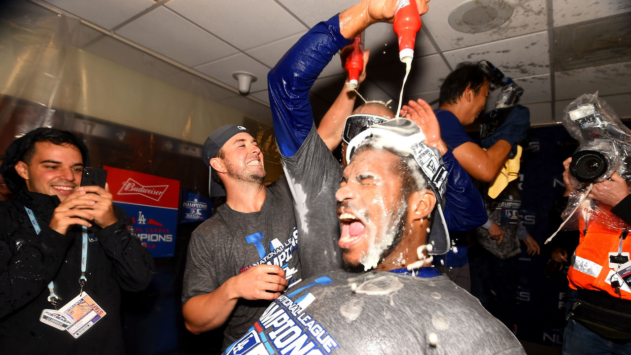 After surprise closer Clayton Kershaw worked a flawless ninth inning to close the game, it was party time for the Dodgers. Puig was front and center amid the beer-flowing chaos.
