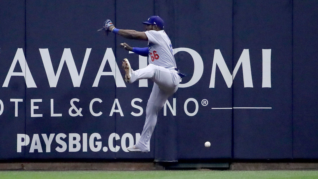 Puig didn't get off to the greatest of starts on Saturday, as he mistimed his jump on a hard line drive from Travis Shaw in the fourth inning. At least the mistake led to a fantastic photo.