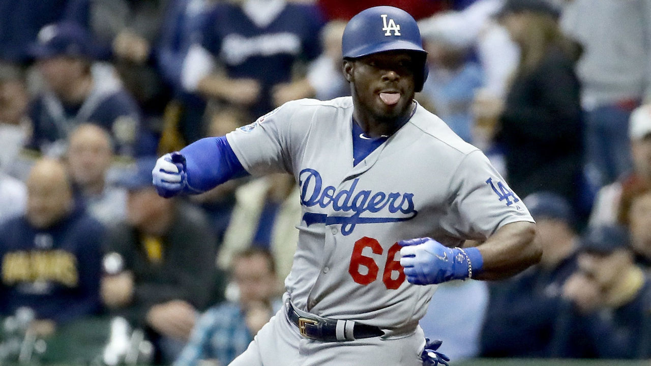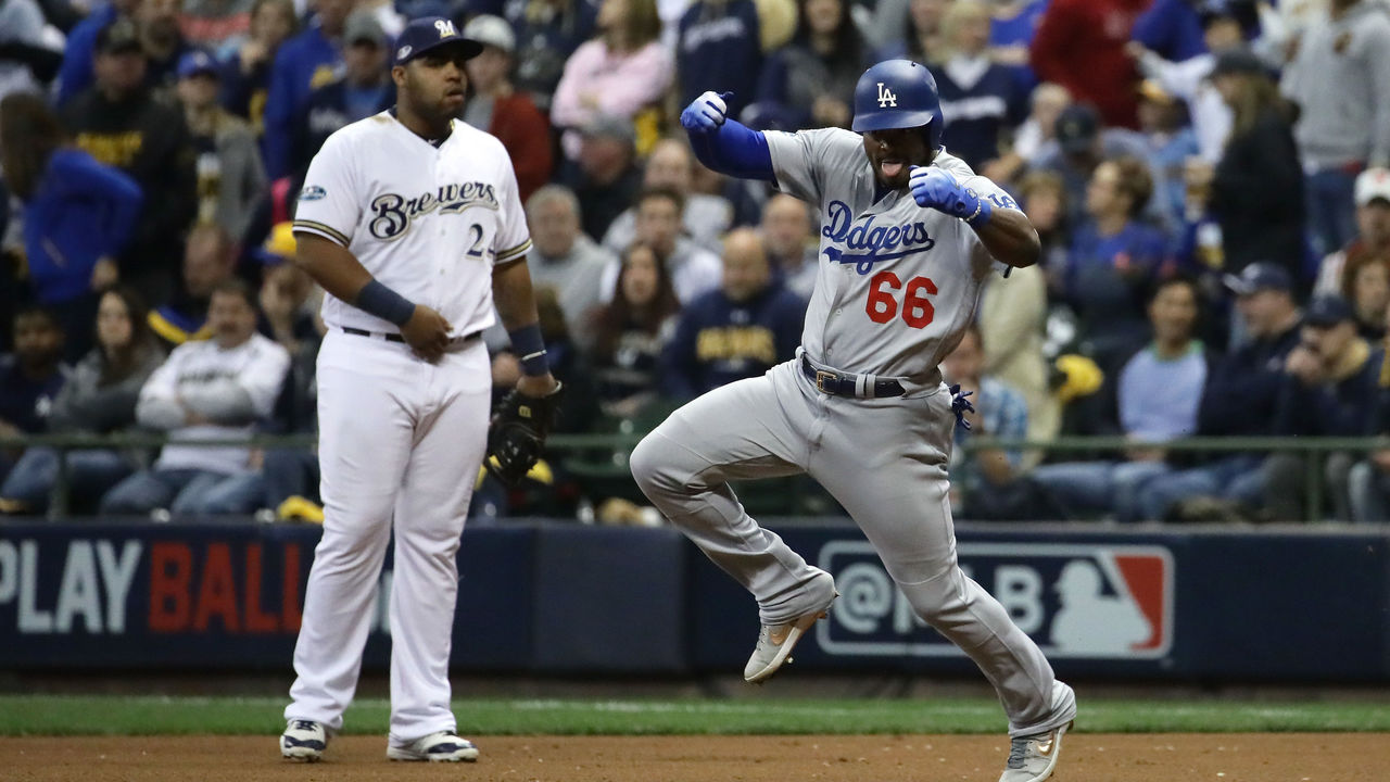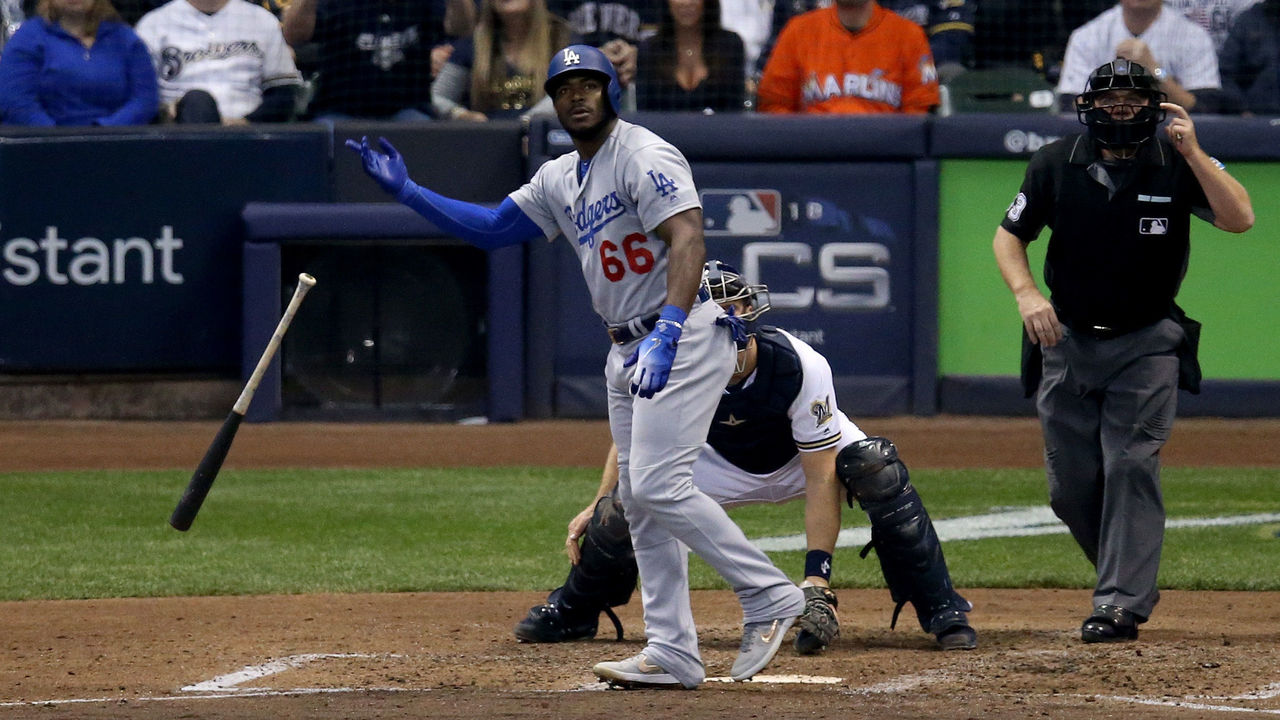 It's the sixth inning. The Dodgers are on top of the Brewers 2-1 thanks to a spectacular catch from Chris Taylor to end the fifth and the enigmatic Puig steps to the plate against Jeremy Jeffress. With two runners on and two outs in the inning, Puig drills a low, outside pitch over the fence in deep center field to silence a rowdy Miller Park crowd and leave his mark with a picturesque bat flip.