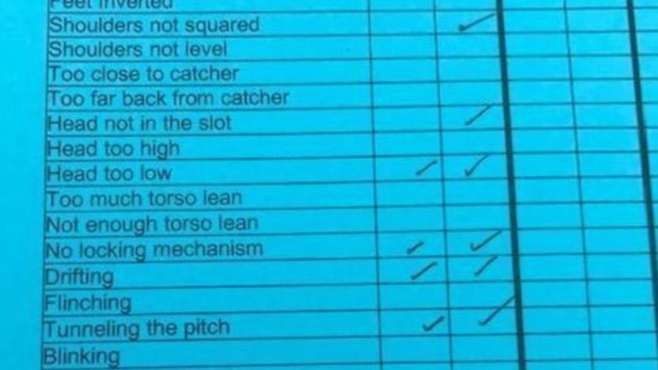 Each umpire, in full gear, tracks eight low-velocity pitches from the machine with a right-handed "batter" (an umpire holding a plastic bat) at the plate under the tutelage of Hickox or DeMuth. Another instructor marks "areas of deficiency" on a blue progress card. After eight pitches, the batter hops over to the opposite batter's box for another eight. On the final pitch, regardless of location, umpires are asked to uncork their strike-three call - the punchout, one of the few calls they're at liberty to stylize.