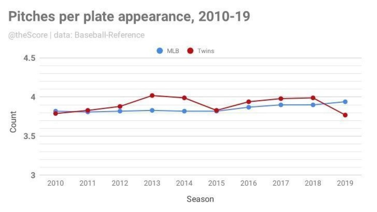 Those increases can be partially attributed to Rocco Baldelli, who replaced Paul Molitor as manager in the winter. Over the final three seasons of Molitor's four-year tenure, the Twins swung at a smaller percentage of pitches than every team except the Boston Red Sox and the Los Angeles Dodgers.