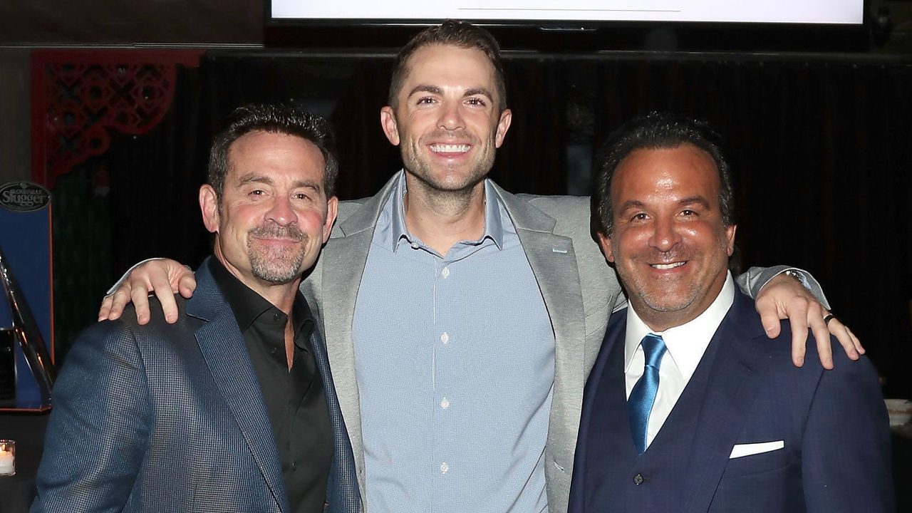 Former Mets third baseman David Wright with his agents Seth Levinson, left, and Sam Levinson of ACES Inc., in 2018. Cassidy Sparrow / Getty Images