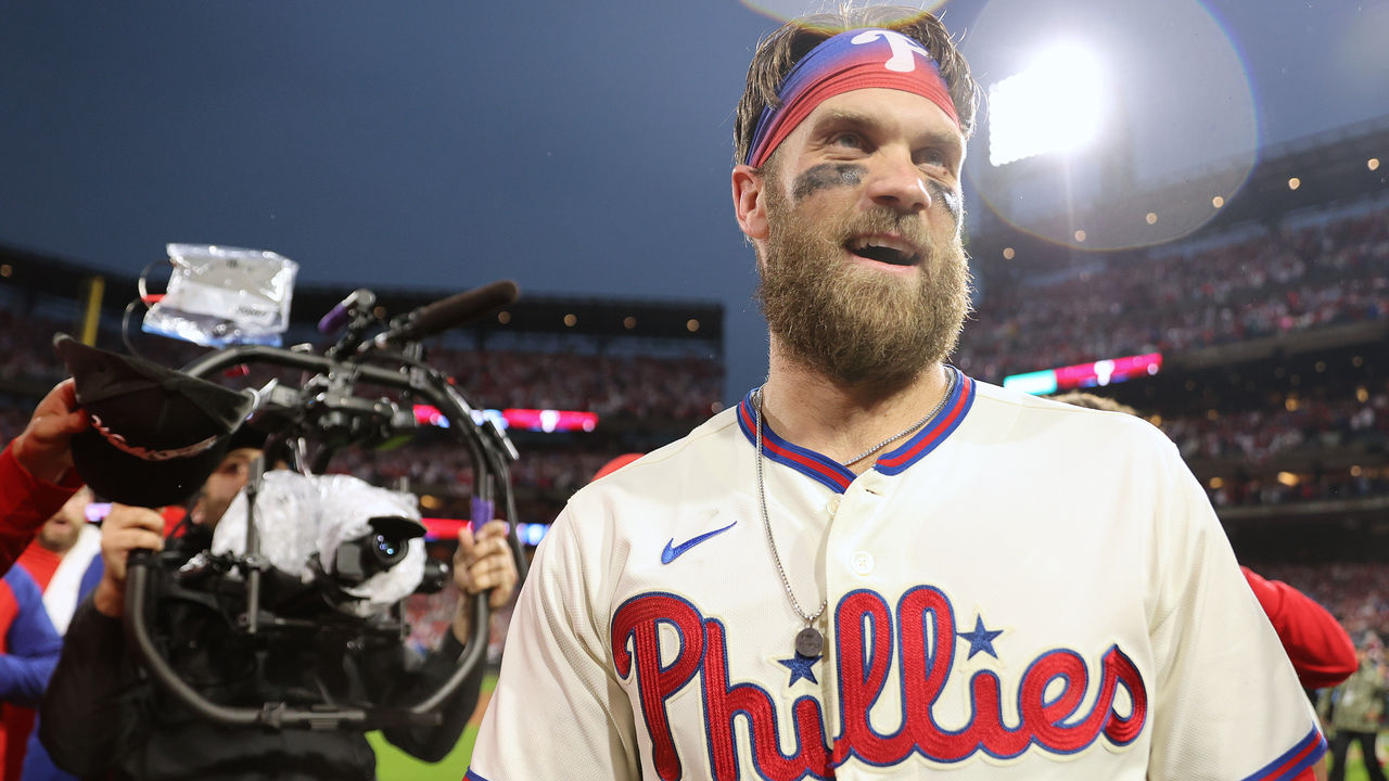 Down by a run with a man on in the eighth inning of Game 5 of the National League Championship Series, Bryce Harper unleashed one of his controlled, violent swings. "The swing of his life," as FOX broadcaster Joe Davis called it. Harper smashed a Robert Suarez 99-mph fastball over the left-field wall. The Citizens Bank Park crowd rose to its feet, tracking the ball's arc, reaching a frenzied state when the ball disappeared into a red-clad mob.