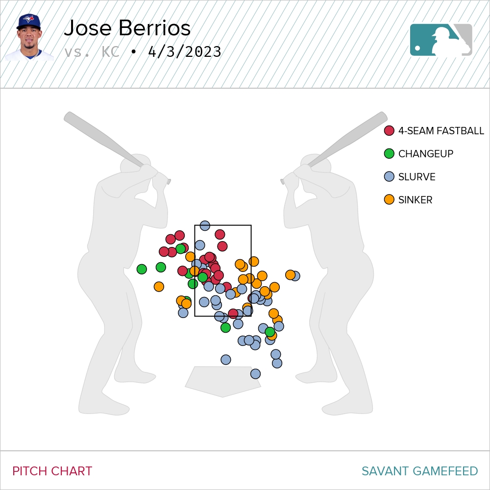 The problem for Berrios is that he doesn't have much margin for error. The 29-year-old is going to have to have impeccable command because his arsenal is trending down in relative terms.