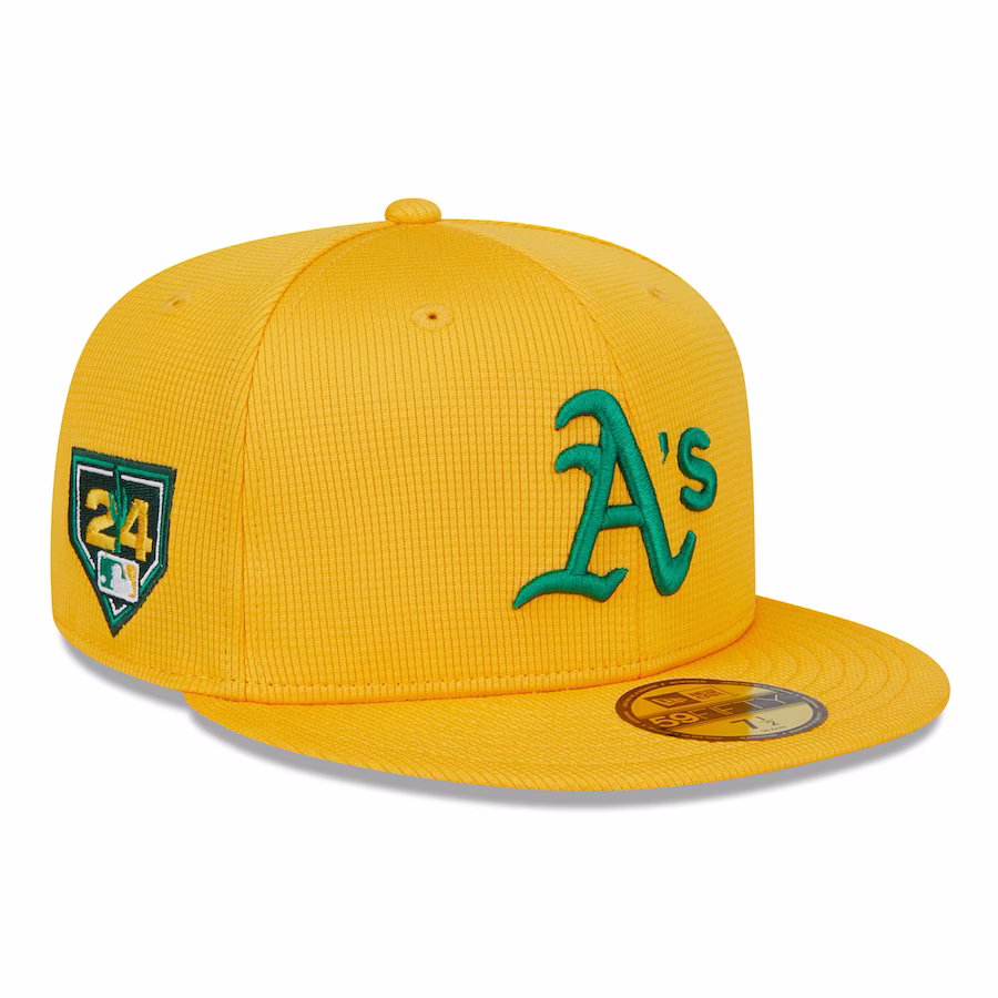 Paying homage to the mostly green hat with gold lettering would've been a better look for what will be the A's last season in Oakland, but these still work.