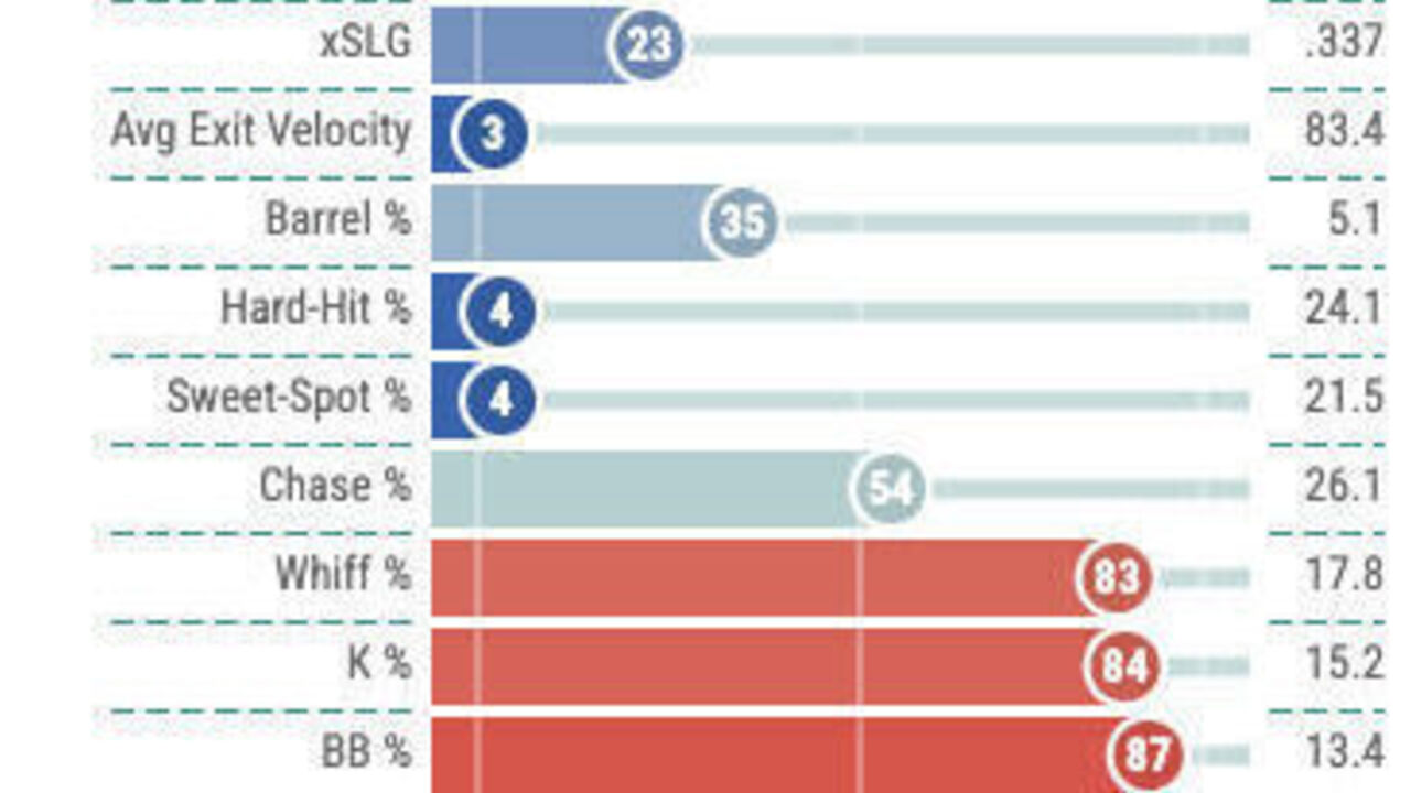 Bogaerts is struggling to hit the ball hard despite still possessing a good understanding of the strike zone and making mostly good swing decisions at the plate. The 31-year-old has seen his exit velocity numbers on the decline for a few years, but he's still be able to grade out as a well-above-average offensive player. It's fair to wonder how long he'll be able to do that if his ability to hit for extra-base hit power continues to be fleeting.