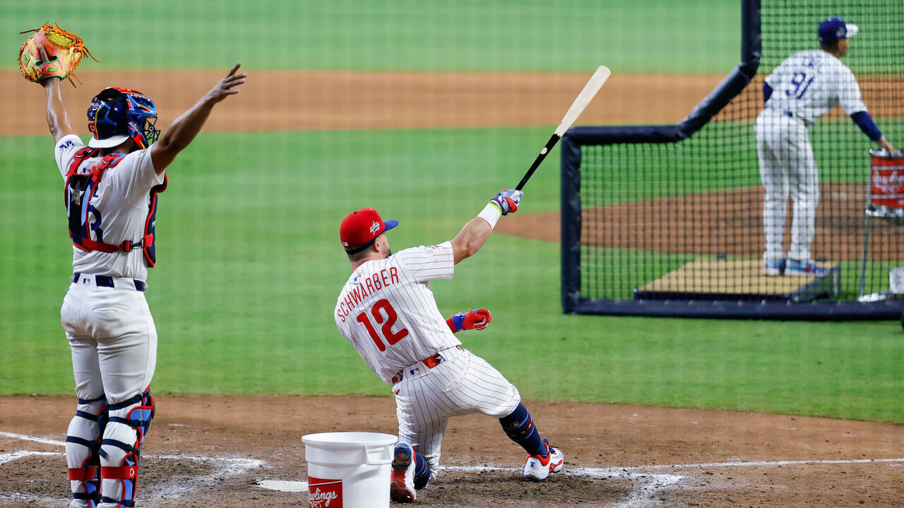 Schwarber went 0-for-2 with a walk for the National League, but homered with all three of his swings to secure the win in the first-ever All-Star Game swing-off.