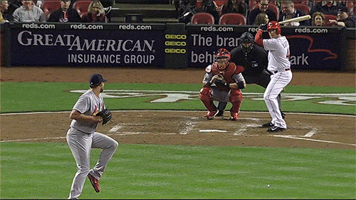 Wacha loads up a high fastball hit and tight to Ludwick, hitting him in the hand, and the deflection nails Daley right in the head.