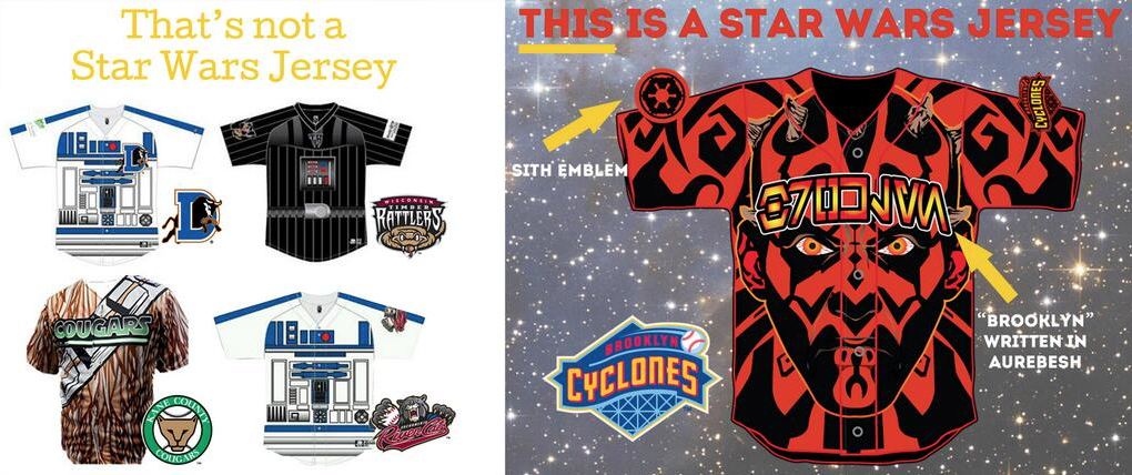 In a fashion that can only be reserved for Brooklyn, the Cyclones unveiled a new Darth Maul themed jersey that will be used on Star Wars night in August.