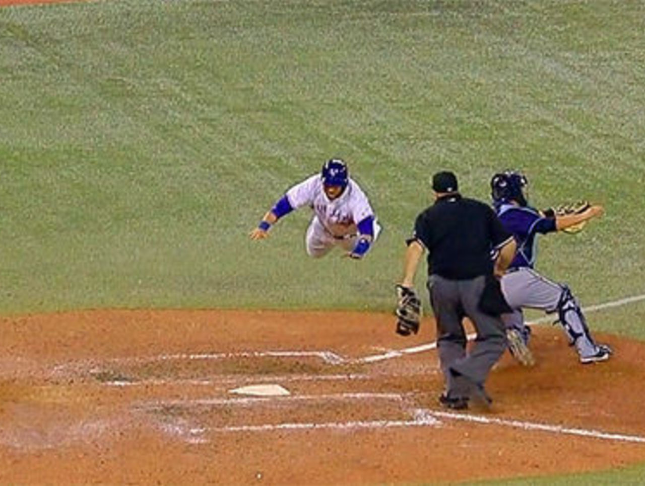 Pillar, who scored from first base on a Rays' throwing error, scored in style with a Superman dive to send the Rogers Centre into a frenzy.