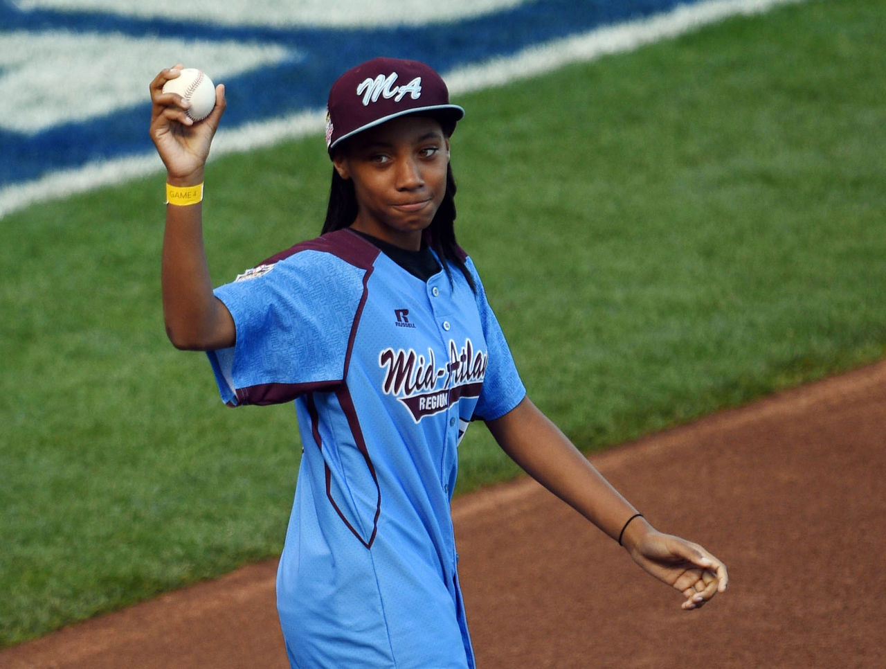 Mo'ne Davis, who won the nation's affection with her talent and poise at this year's Little League World Series, throws out the ceremonial first pitch Saturday evening.