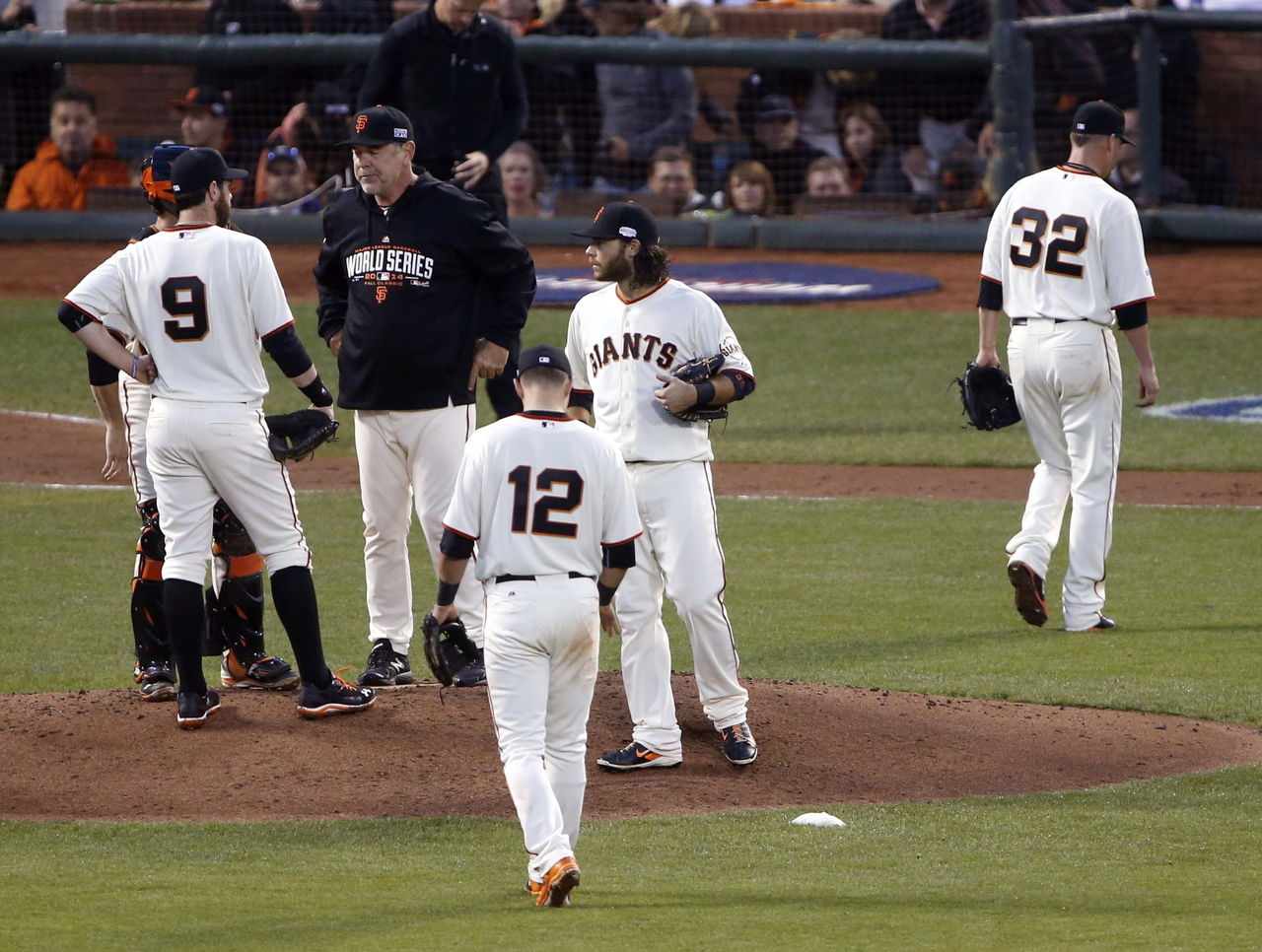 A forlorn Ryan Vogelsong heads for the dugout after being removed in the third inning with his team trailing 4-1. The 37-year-old right-hander allowed four earned runs over just 2 2/3 frames as he failed to pitch beyond the third inning for a second consecutive start.