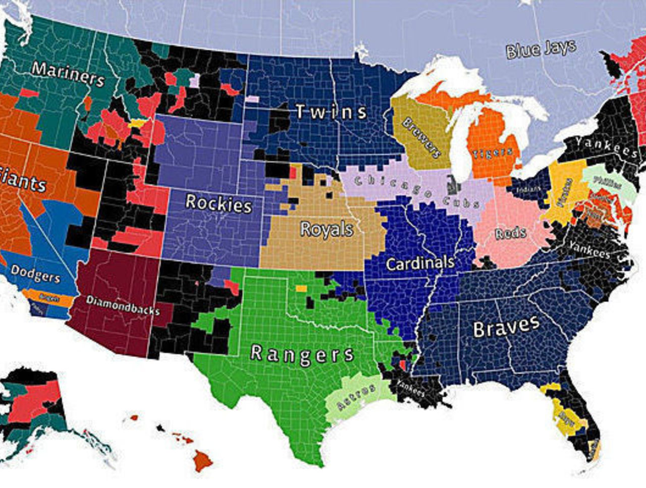 Facebook has broken down the fan support by county for every MLB team using the amount of likes each team receives in various regions. The Yankees lead the way with support in at least one county in 24 different states.