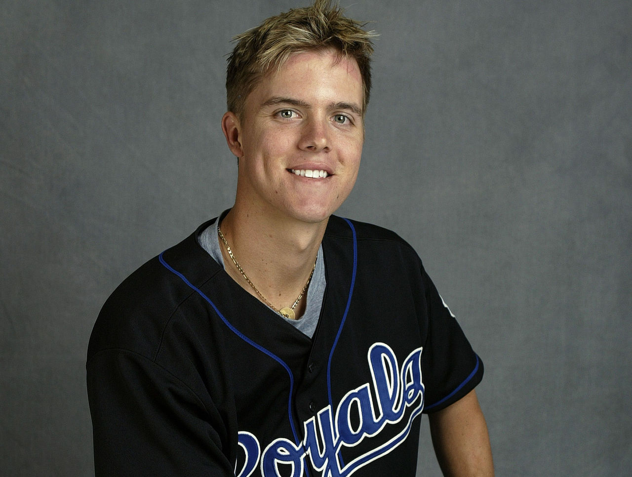 A boyish Greinke sat down for his preseason team photo with the Kansas City Royals in 2003 with a cowlick hairstyle that somewhat resembles the look he sported Friday with the Diamondbacks.