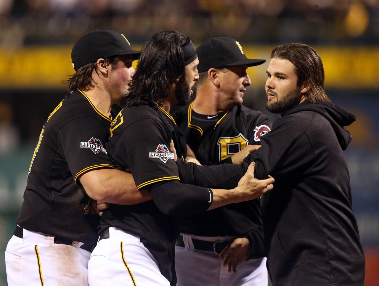 During a wildcard showdown between the Cubs and Pirates, things got ugly when benches cleared after Jake Arrieta - who was dominating Pittsburgh on their home field - was plunked by Tony Watson.