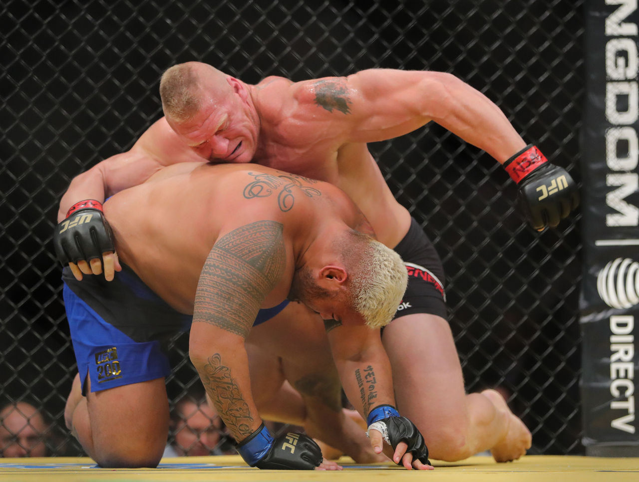 Between the mileage accrued in wrestling, the cage, and the squared circle, Lesnar likely has no more than a couple of fights left in him. Assuming he'll spend the twilight of his career in the UFC, for the sake of argument, it benefits the bosses to book him opposite worthy but beatable opponents, such as fan favorite Derrick Lewis or Alexander Volkov.