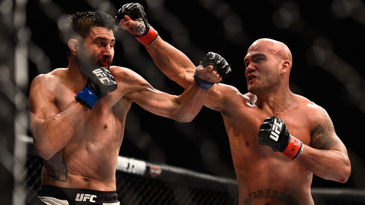 Round 1: Lawler pressed the action early and was first to land a punch. But Condit got the better of the striking exchanges overall, especially in the second half of the round. He briefly dropped the champion with a left hand and attacked Lawler in the clinch. Lawler landed a few solid shots of his own, but his offense all but disappeared in the last two minutes of the frame. Condit stayed busier and used several kicks to keep his opponent at bay. theScore gives the round to Condit, 10-9.