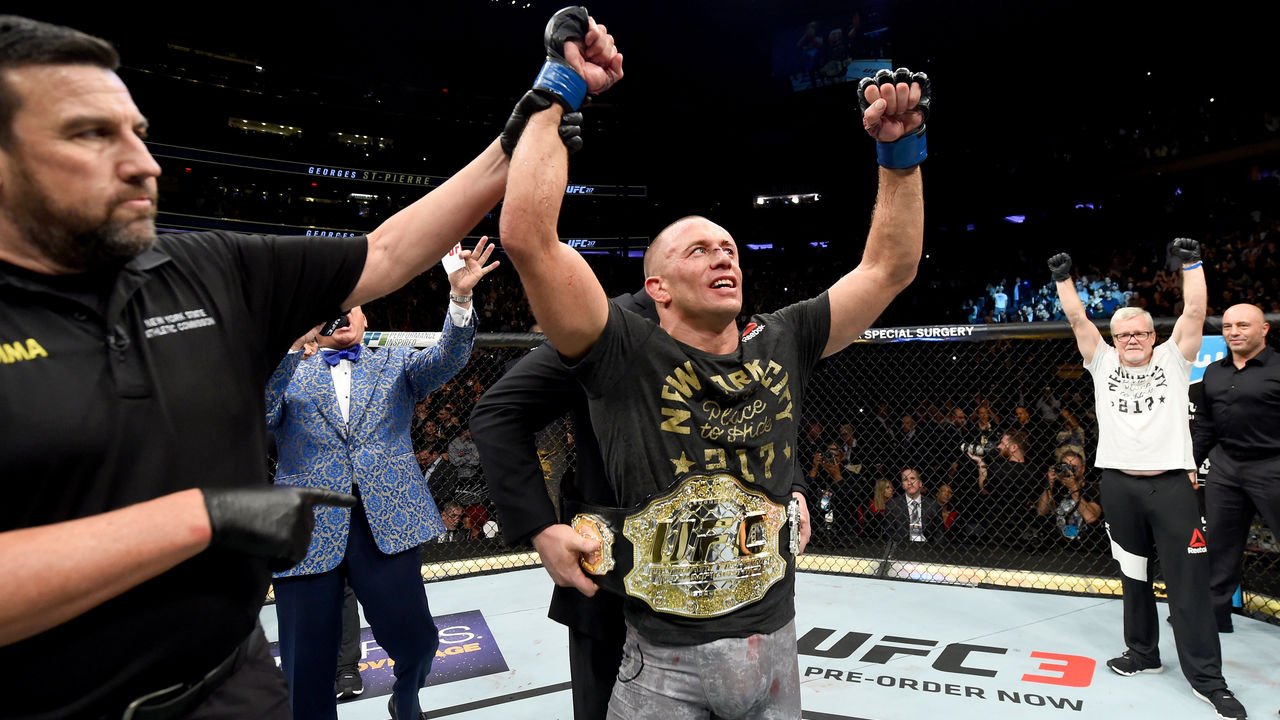Yes, St-Pierre left the sport in 2017 with a big win over Michael Bisping to capture the middleweight title and become a two-division champion; before that, he defended his welterweight belt countless times. But it's already been almost three years since his last fight, so there's no way of knowing how he'd perform today against someone like Usman - but let me tell you, he probably wouldn't be favored.