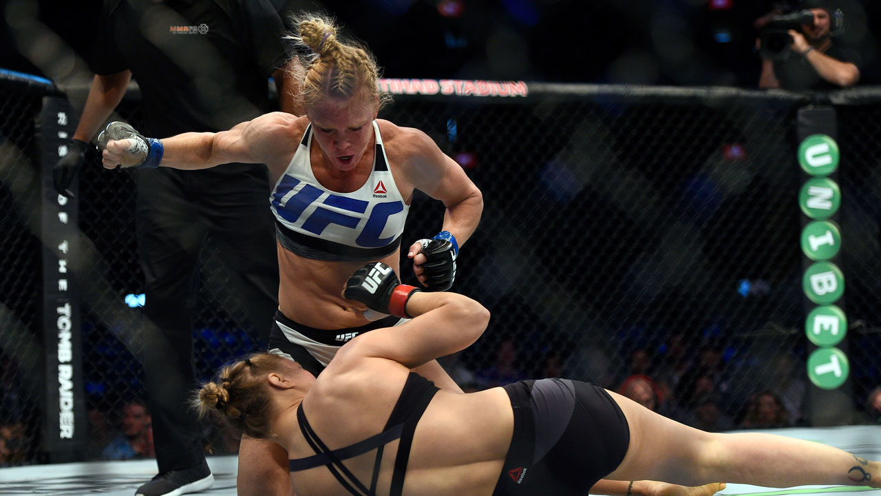 So, of course, when Holm, 2-0 in the UFC at the time, marched into the Octagon at UFC 193 in 2015 and knocked out Rousey in the second round, it was a huge surprise. Rousey was one of the first names that came to mind when you thought about a UFC champion with the best chances of retiring undefeated because she appeared to be far ahead of her competition. A head kick from Holm put an end to that notion for good.