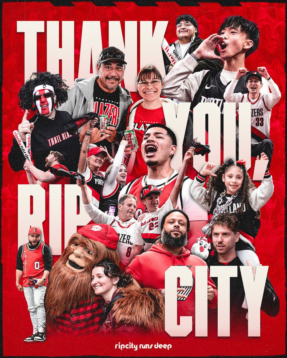 Portland Trail Blazers@trailblazersThank you #RipCity for your support all season long โค๏ธ22 hours agoโข
