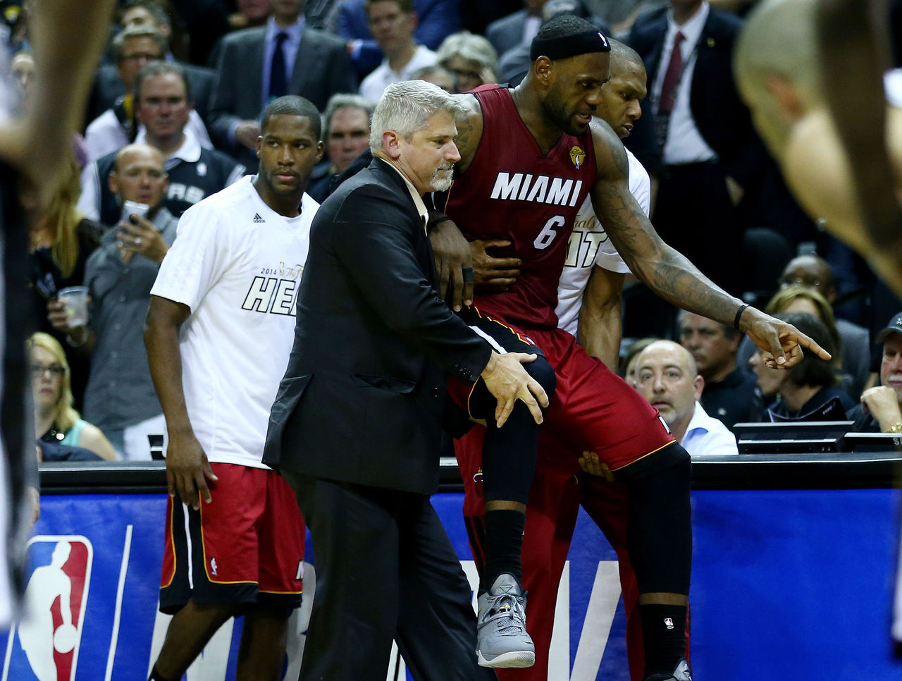 A year after a fairly epic seven-game series in which the Miami Heat topped the San Antonio Spurs, Miami came into the 2014 Finals running low on gas. No image encapsulated that better than LeBron James being helped off the floor after cramping up in Game 1 - even though an air-conditioning malfunction at AT&T Center may have contributed to it.
