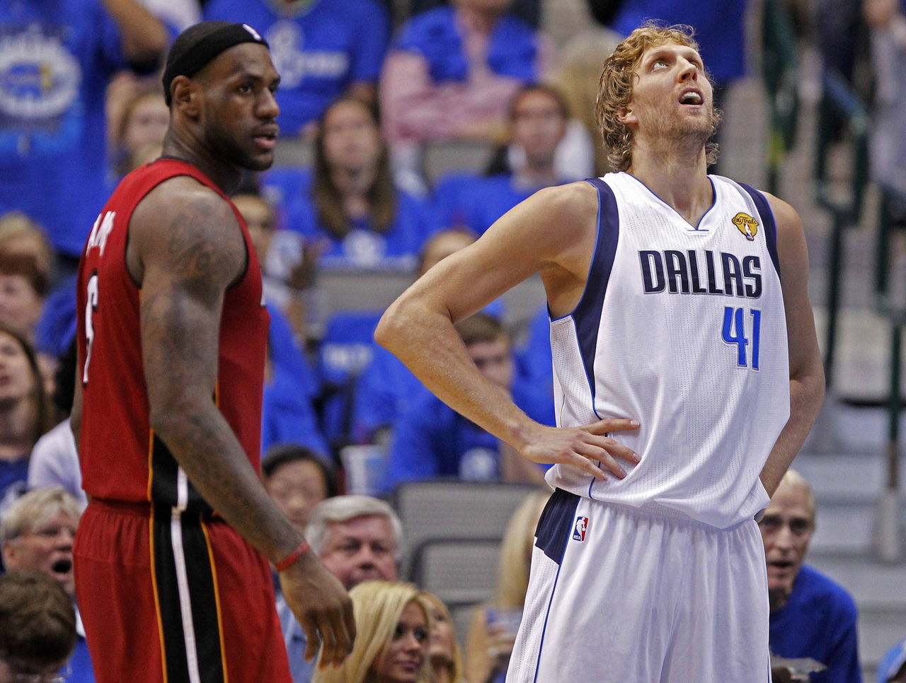 After failing to reach the finals in three straight seasons, James finally returned with the Heat in 2011. In its first year with the big three, Miami was the heavy favorite, but fell to Dirk Nowitzki and the Dallas Mavericks in six games. After trailing 2-1, Dallas won the final three games for the championship.