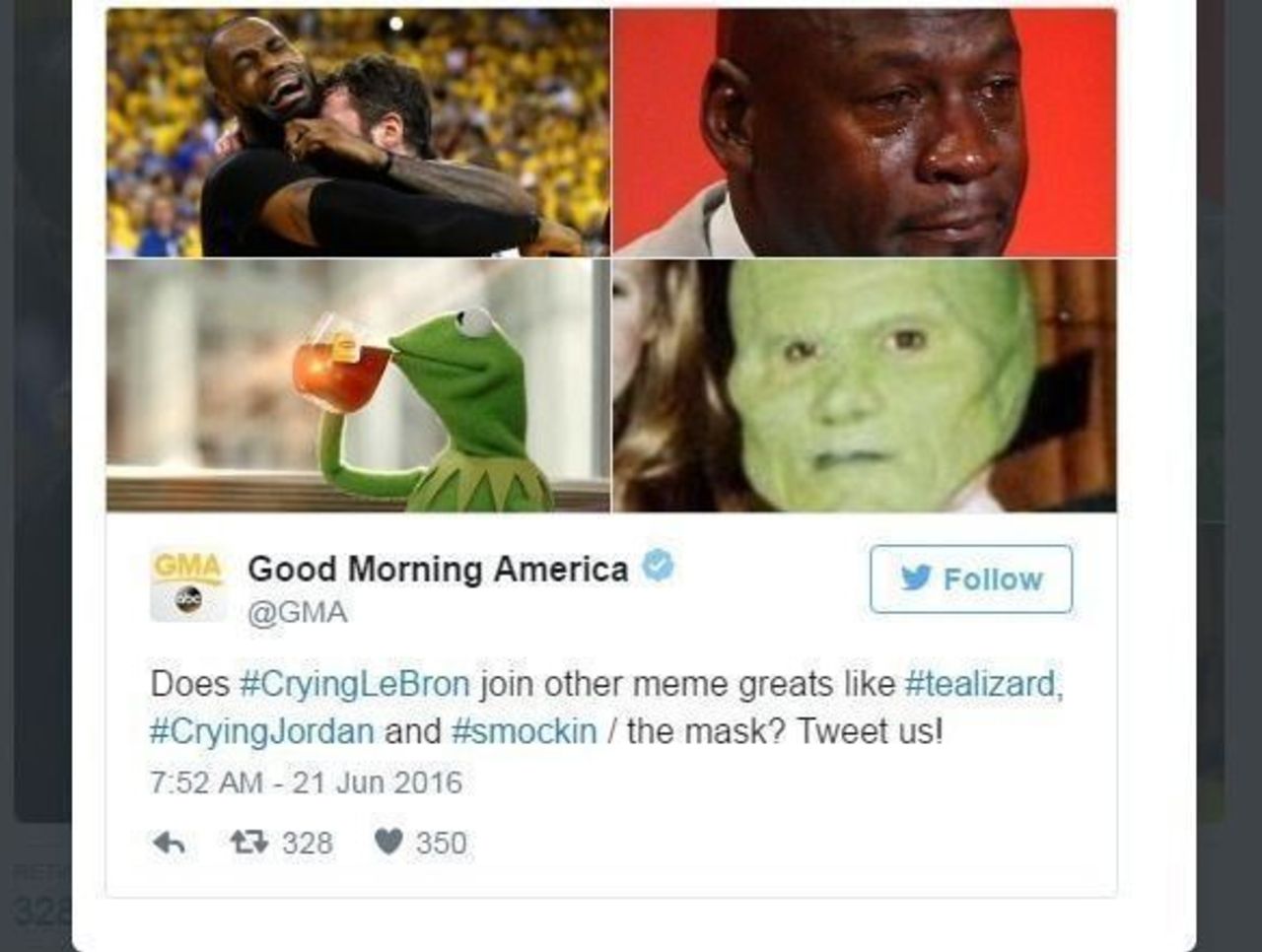 The perceived disappointment in the quality of Crying Jordan memes in the wake of the Golden State Warriors' NBA Finals loss hasn't stopped ABC's "Good Morning America" from diving into deep questions about its place in the pop culture ranks.