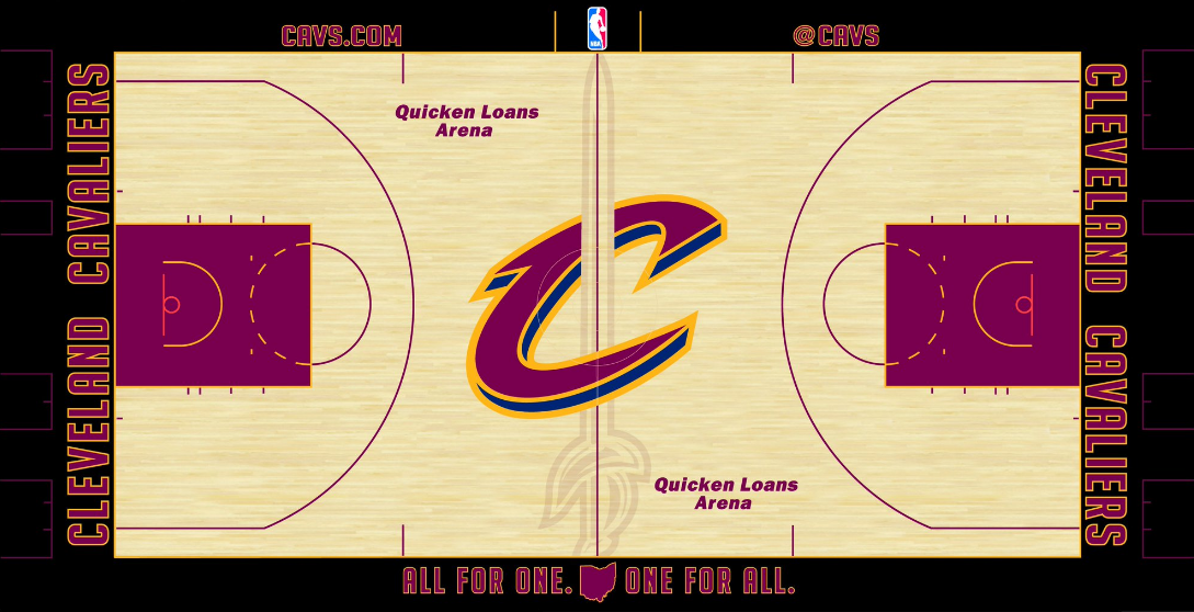 The new design, revealed Friday, features a sword crossing through the signature "C" at the middle of the court. Cleveland's motto, "All for one, one for all" - bisected by the shape of Ohio - will also be shown along the sideline.